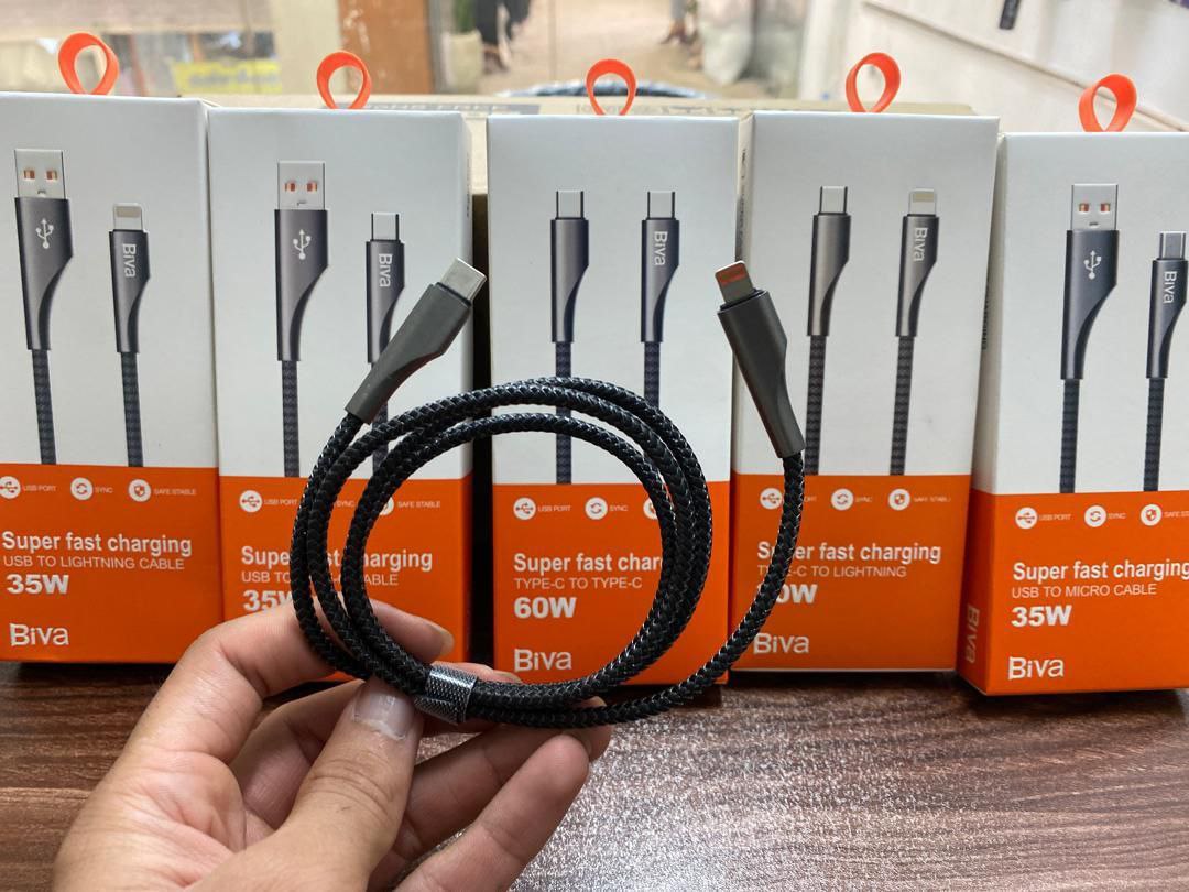 کابل کنفی Biva تایپ c به لایتنینگ ، بسیار با کیفیت ، سوکت فلزی دارای برد کنترل شارژ به همراه گارانتی یک ساله تعویض رایان سرویس