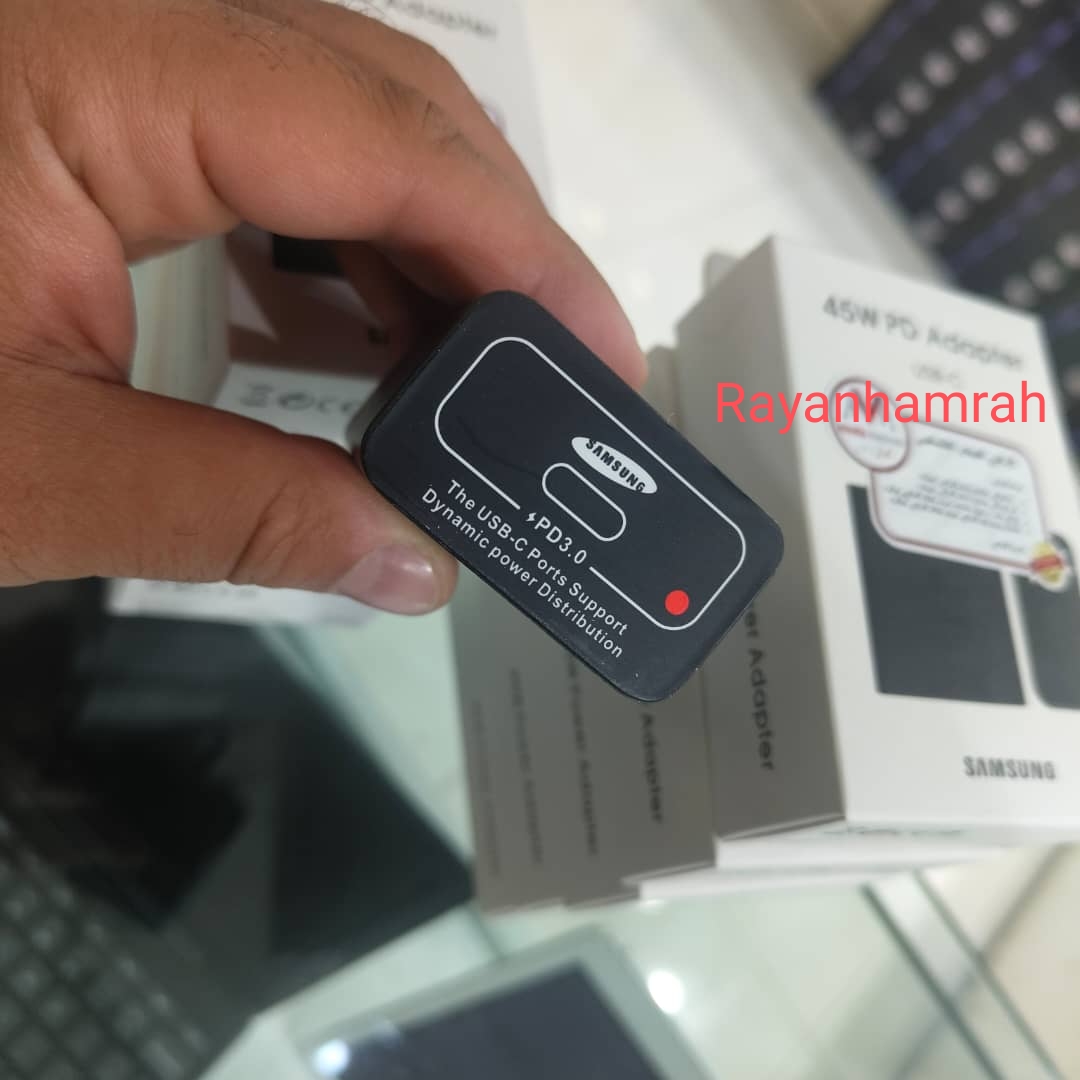 شارژر 45 وات با NFC مدل 4510-dynamic power distribution, قابل استعلام از سایت سامسونگ ، پک و برد اورجینال سامسونگ،دارای برگه ریجستری سامسونگ ، قابلیت شارژ سوپر فست 2 به همراه گارانتی یک ساله تعویض رایان سرویس