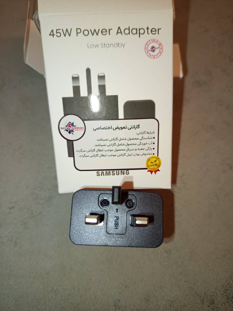 شارژر 45 وات سه پین (۴۵۱۱-low standby) اورجینال سامسونگ نیو پک+NFC به همراه گارانتی یک ساله رایان سرویس