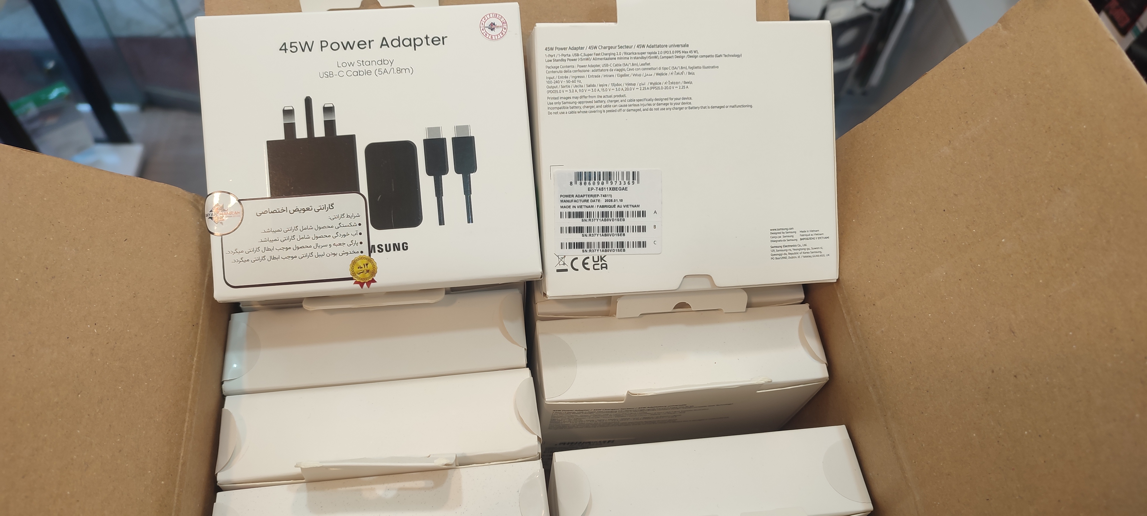 شارژر 45 وات سامسونگ + کابل 1.8 متری داخل پک مادر | 100% اورجینال ✅ نیو پک مدل 4511✅ برد مشکی سولوم اورجینال ( اورجینال سامسونگ)✅ دارای NFC ✅ قابلیت استعلام اصالت کالا از سایت رسمی سامسونگ ✅سوپر فست ۲ ✅ همراه با گارانتی یکساله رایان سرویس