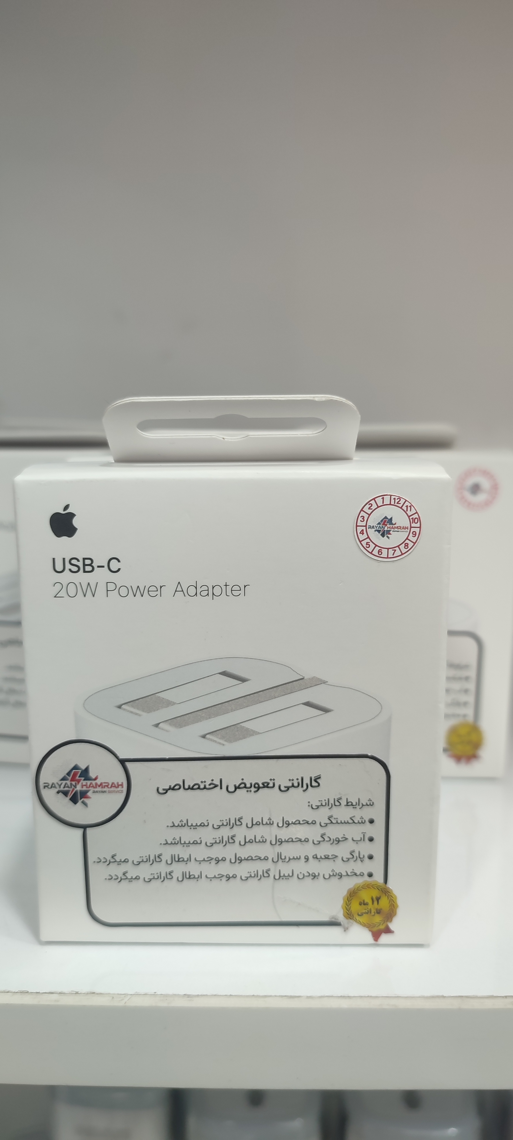 شارژر ۲۰ وات آیفون ( سه لیبل چک اصلی ) برد اورجینال ۱۲ پین و پک امارات ، پارت BA ، به همراه گارانتی یک ساله تعویض رایان سرویس